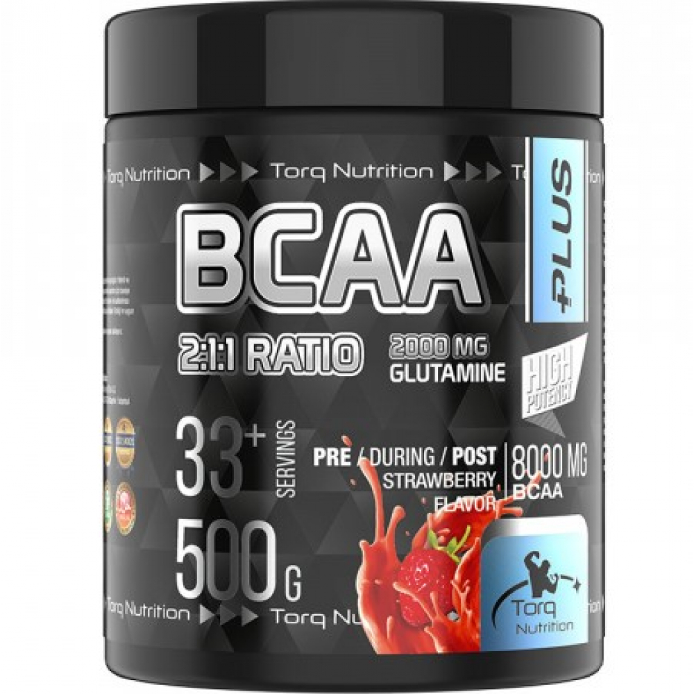 Torq Nutrition BCAA+ toz formda olan bir BCAA ve Glutamin ürünüdür. Her 1 servisinde 8000 mg BCAA, 2000 mg Glutamin içermektedir. BCAA oranı 2:1:1’dir. İçilebilir toz formda oluşu antrenman esnasında rahatlıkla tüketilebilir.