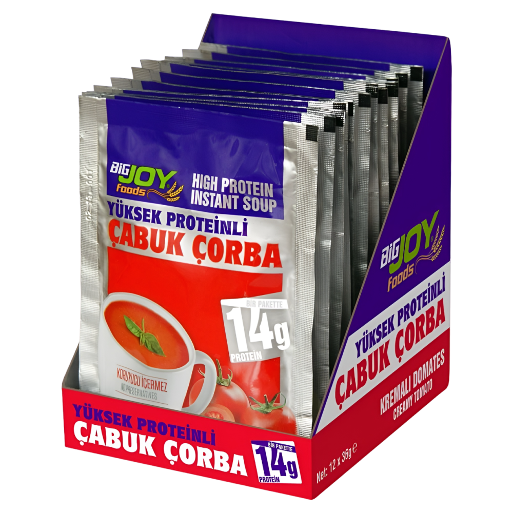 Big Joy Proteinli Çabuk Çorba toz fomrda olan proteince zenginleştirilmiş bir hazır yiyecek ürünüdür.
