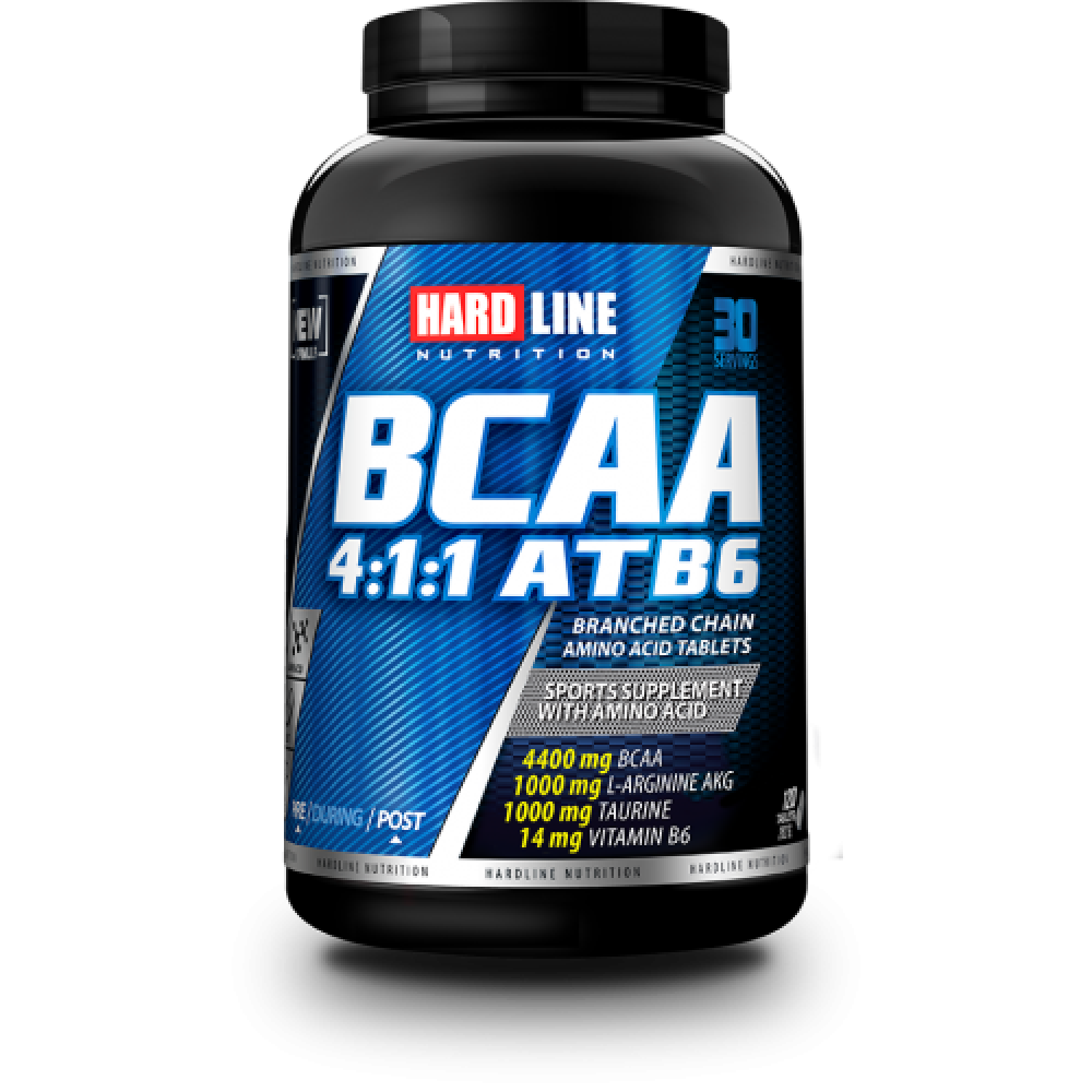 Bitkisel kaynaklı fermente edilmiş 4:1:1 oranında 2940 mg L-Leucine, 735 mg L-Valine ve 735 mg L-Isoleucine içerir. Dallı zincirli amino asitler (BCAA) olarak isimlendirilen bu amino asitler, iskelet kaslarında en yoğun bulunan amino asitlerdir. Örneğin, tipik bir protein öğününden sonra kaslar tarafından emilen amino asitlerin %90'ını BCAA'lar oluşturur. İçeriğinde ayrıca amino asit türevleri olan Arjinin Alfa Ketoglutarat ve Taurin’de bulunur. Hardline BCAA 4:1:1 ATB6, sporcular için özel tasarlanmış olan tablet üründür.
